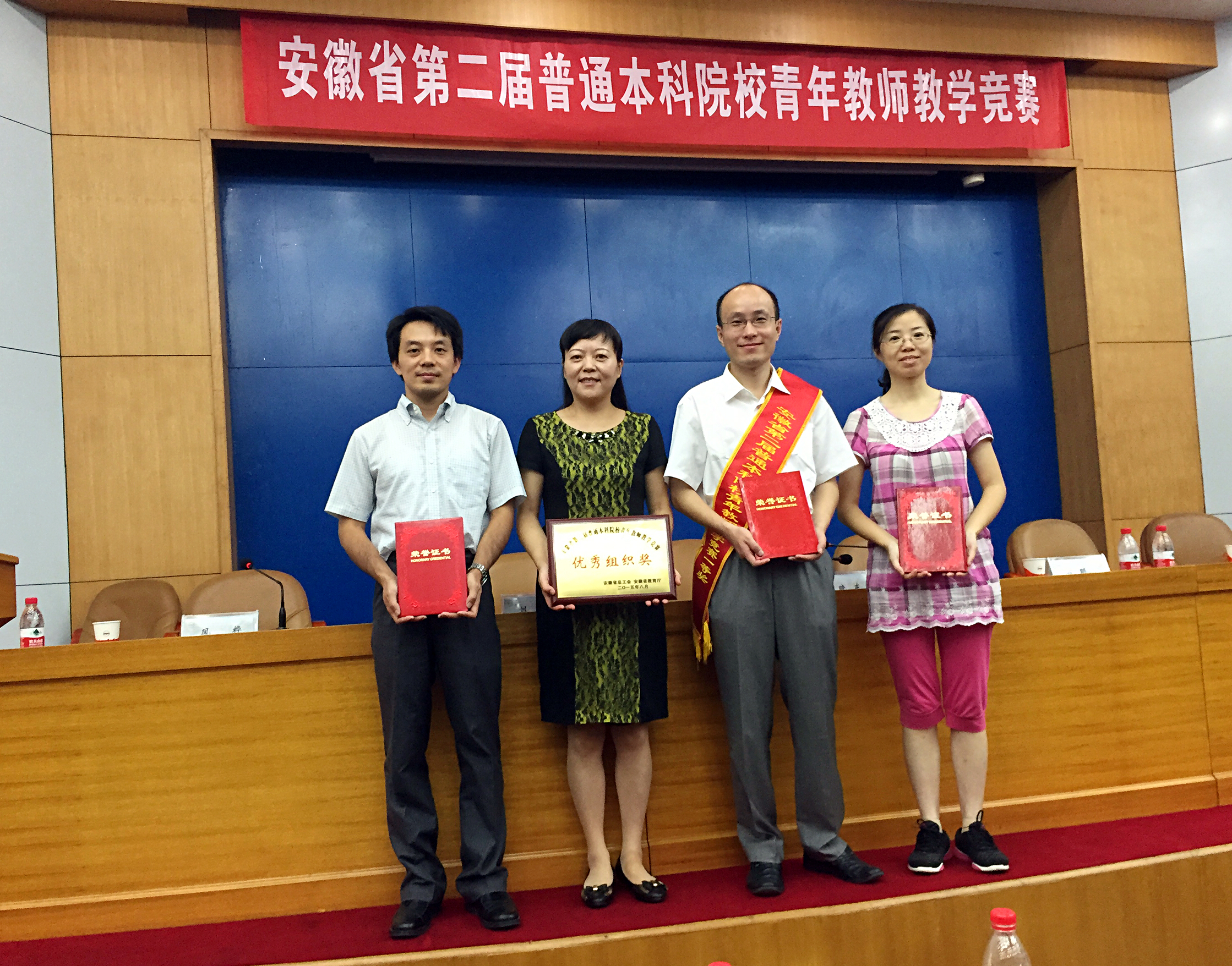 8月22-23日,安徽省第二届普通本科院校青年教师教学竞赛在合肥工业大学举办。经过两天的激烈角逐,我校涂涛老师荣获了自然科学基础学科组一等奖、李兰兰老师荣获了人文社会科学组二等奖、赵刚老师荣获了自然科学应用学科组三等奖,校工会荣获了“优秀组织奖”。
