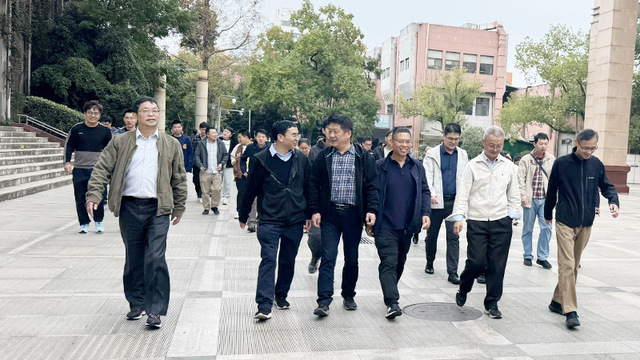沐浴着秋日暖阳,老师们精神抖擞,结伴而行。长长的队伍成为校园里一道流动的风景线。大家边走边聊,气氛轻松愉快,首站抵达郭沫若像前并合影留念。队伍随后途经图书馆、东活广场、物质楼等地标,最终抵达本次活动的终点——地球和空间科学学院前沿研究中心。
