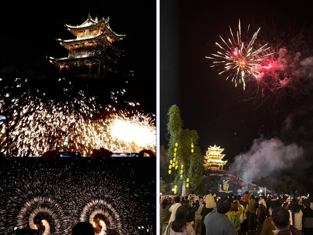 当晚,大家前往齐云山脚下的齐云小镇,观赏了一场精彩的非遗演出。手工鱼灯秀翩跹起舞,武术表演刚柔并济,尤其是璀璨的“打铁花”与烟花秀照亮夜空,令在场观众赞叹不已,将第一日的行程推向高潮。