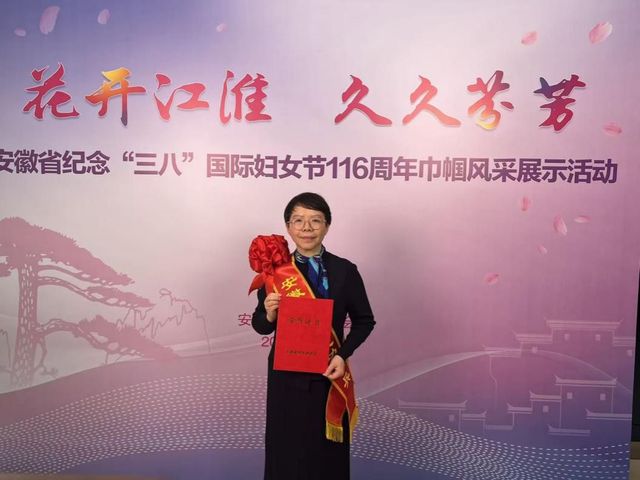 3月6日上午,安徽省妇联举办“花开江淮久久芬芳”——巾帼风采展示活动,对安徽省巾帼建功标兵、巾帼文明岗、巾帼建功先进集体进行表彰。我校化学与材料科学学院许毓副教授荣获“安徽省巾帼建功标兵”称号并现场接受颁奖表彰。