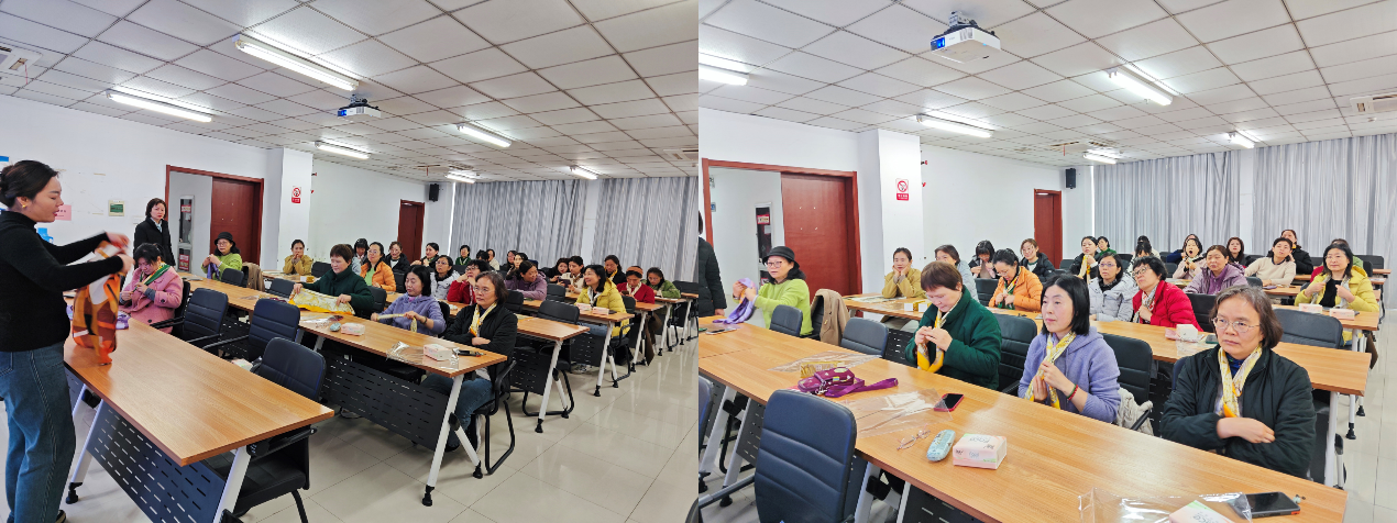 活动开始由民生银行工作人员向参与活动的女同胞们普及金融防骗和家庭理财保险方面的知识,之后便是创意穿搭的丝巾秀现场教学。