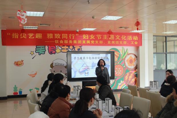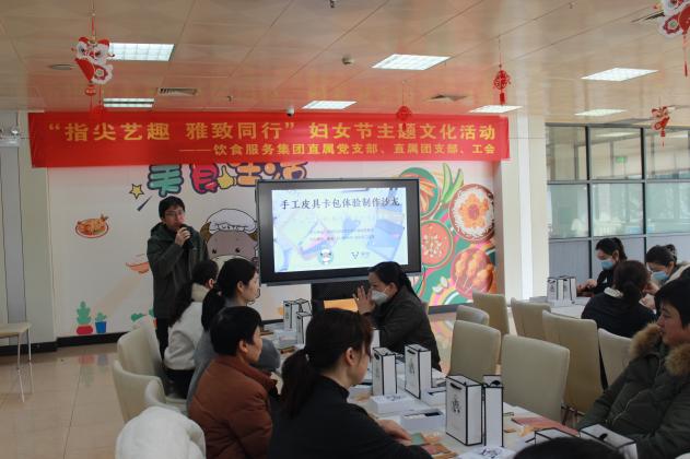 为庆祝“三八”国际劳动妇女节,丰富女教职工精神文化生活,3月5日下午,在校工会的大力支持下,饮食服务集团直属党支部、直属团支部、工会举办了以“指尖艺趣 雅致同行”为主题的2026年妇女节主题文化活动暨主题党日活动。本次活动旨在引导女教职工在手作中感受传统美学与工艺温度,提升艺术素养与生活情趣,集团全体在岗女教职工积极参与其中。