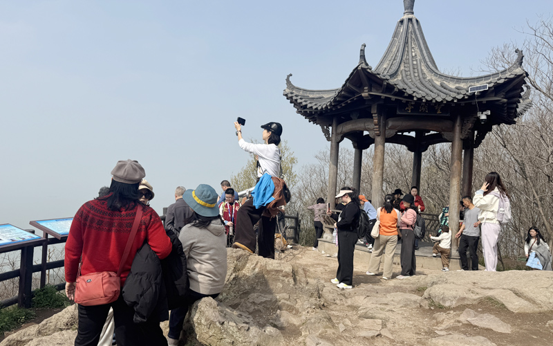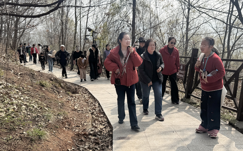 上午8时30分,参与活动的老师们集合乘车前往肥东四顶山。时值春日,天朗气清,沿途油菜花、桃花、李花、玉兰花次第绽放,绿意盎然的麦田与浩渺巢湖相映成趣,构成一幅生动的田园画卷。四顶山海拔170余米,登顶后可将巢湖风光尽收眼底。老师们拾级而上,在山间漫步交流,在锻炼身体的同时放松心情。