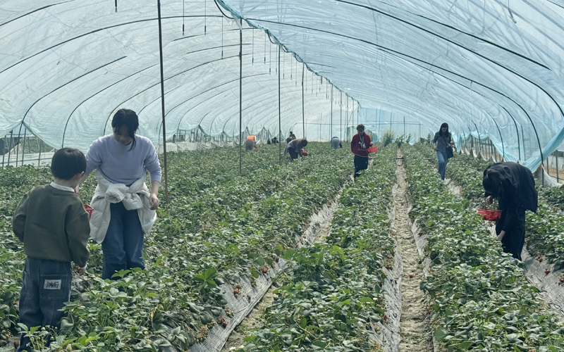 中午,大家在大圩农家乐品尝了地道的农家土菜。餐后,一行人前往附近的草莓采摘园。大圩生态农业旅游区毗邻合肥市区,是市民休闲度假的热门去处,路边鲜花盛开,风景宜人。老师们走进草莓大棚,亲手采摘鲜红饱满的果实,品尝劳动成果,欢声笑语不断。